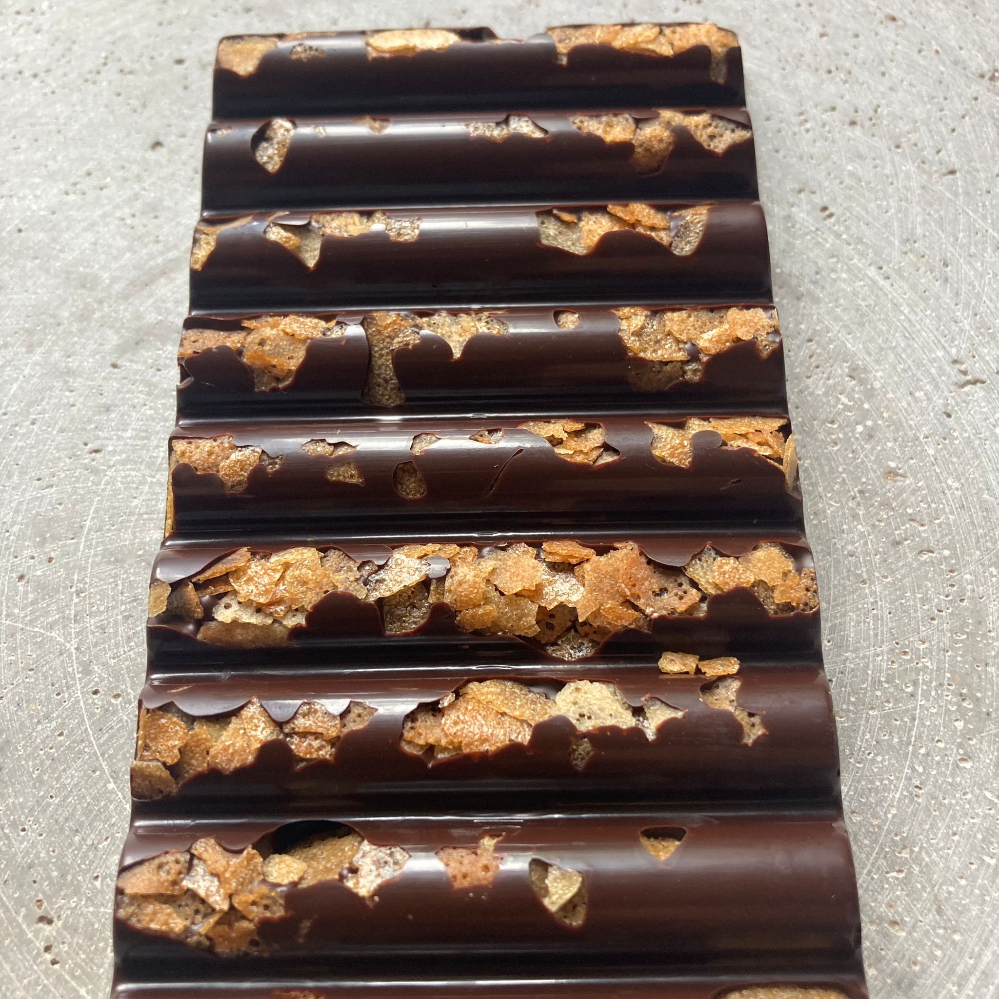 Votre tablette réconfortante du quotidien au chocolat noir 70% et crêpe dentelle croustillante.