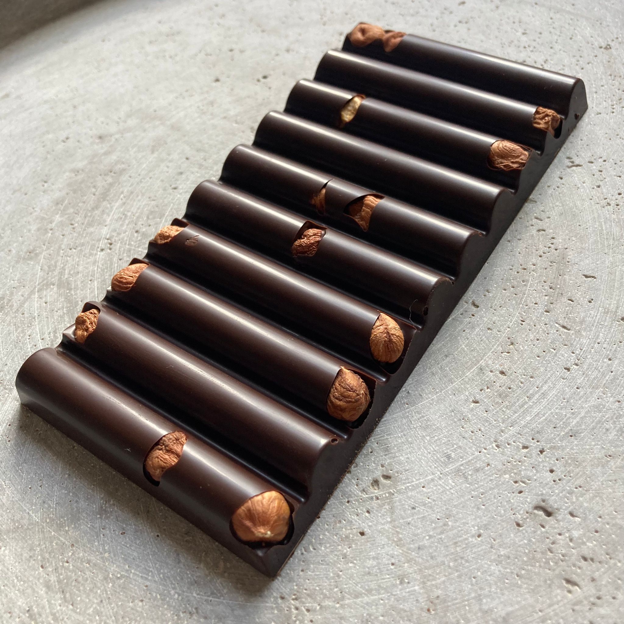 Votre tablette réconfortante du quotidien au chocolat noir 70% et noisettes romaines entières.